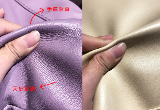 ▲按壓真皮會有天然紋路,這是合成皮所沒有的喔!