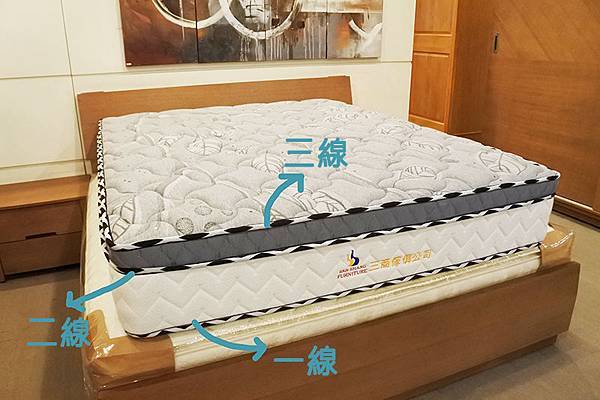 三線床墊:是指彈簧上方加上的襯材(舒適層),可以用來調整床墊軟硬度和躺感。